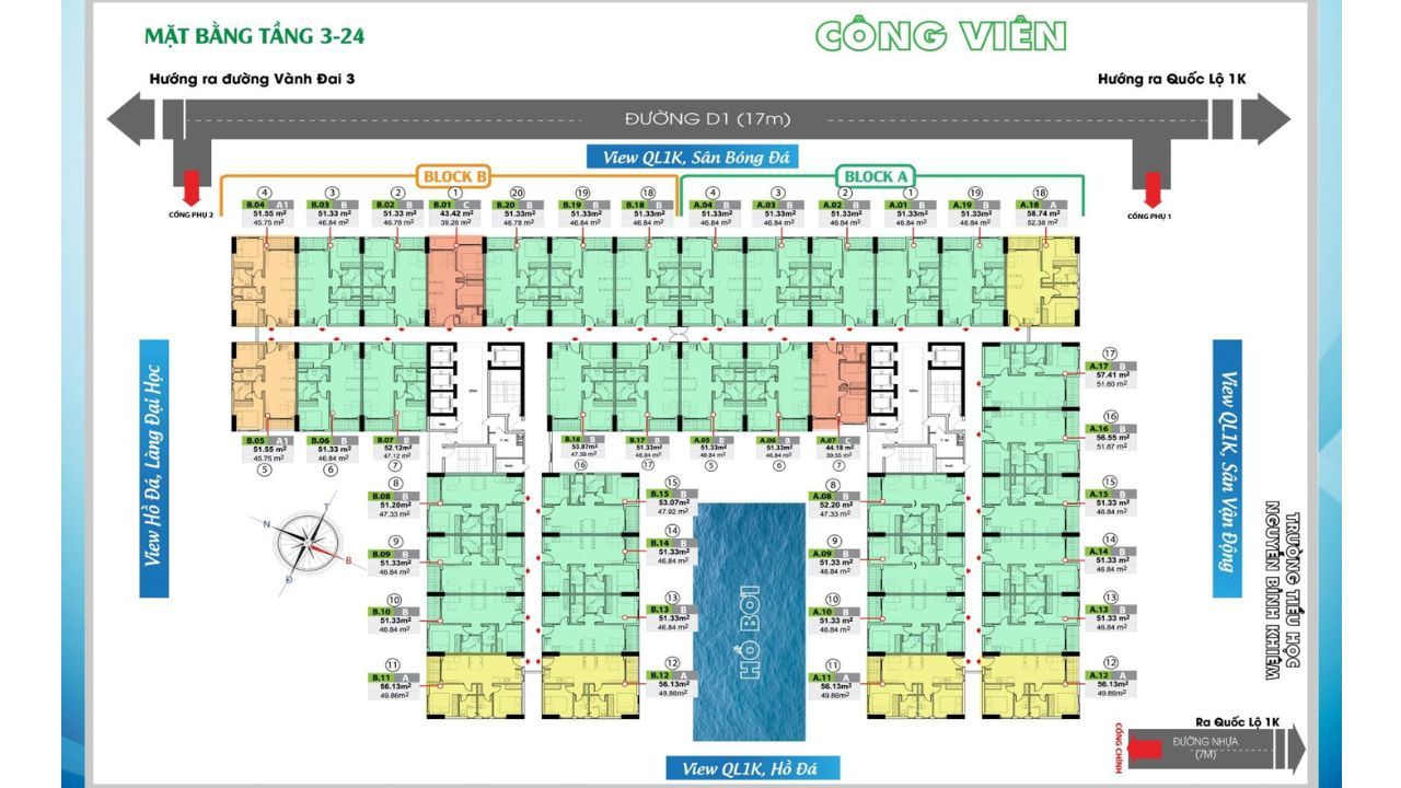 Với thiết kế 56m2 tim tường,căn góc dự án luôn là ưu tiên hàng đầu dành cho khách hàng mua ở.Các căn góc tại Bcons Green View đều có tất cả các hướng.Căn góc có vị trí đẹp hơn các căn còn lại là hướng Đông Nam và view Hồ Bơi.Căn góc giá tốt nằm ở hướng tây và tầng thấp.