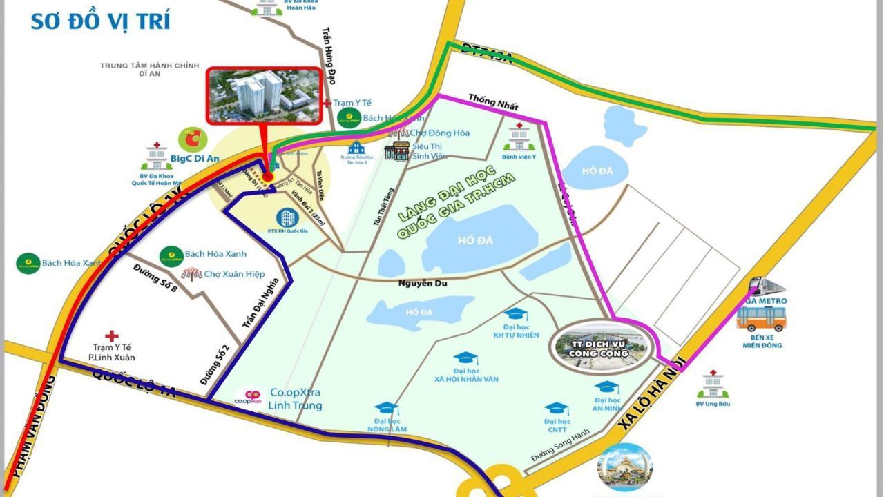 Từ vị trí dự án Bcons Green View,có thể di chuyển thuận tiện đến các trung tâm lớn như Trung Tâm Hành Chính Dĩ An,Bến Xe Miền Đông Mới,Bệnh Viện Ung Bứu Cơ Sở 2,Metro Bến Thành-Suối Tiên hoặc Làng Đại Học Quốc Gia.