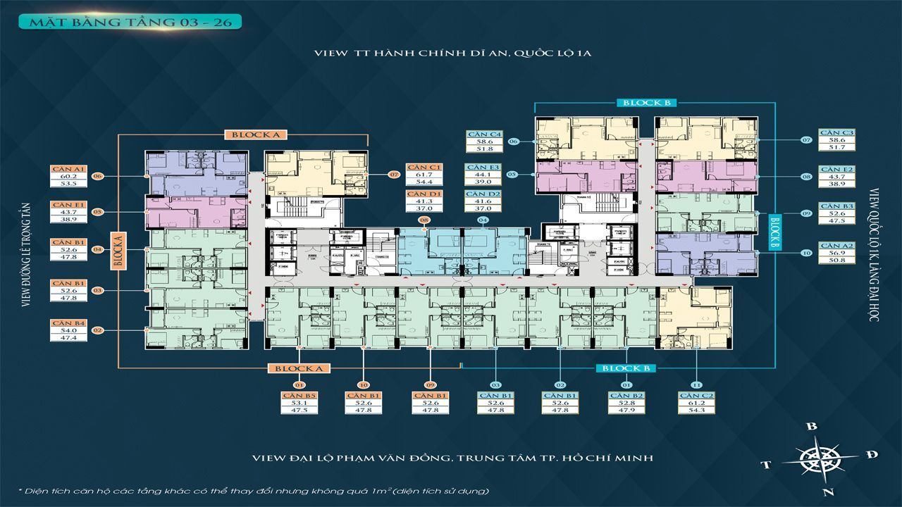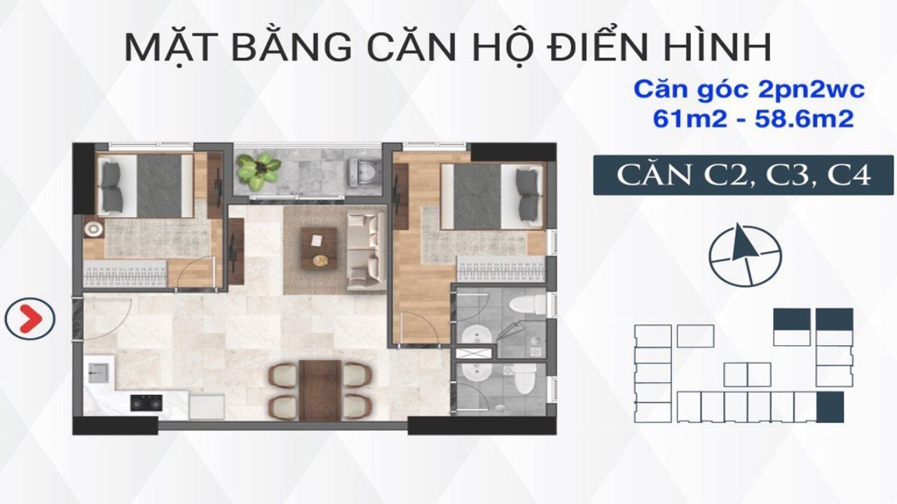Ngoài ra các vị trí căn góc 2PN 2WC có 2 hướng view sẽ có giá cao hơn nhiều so với căn thường.