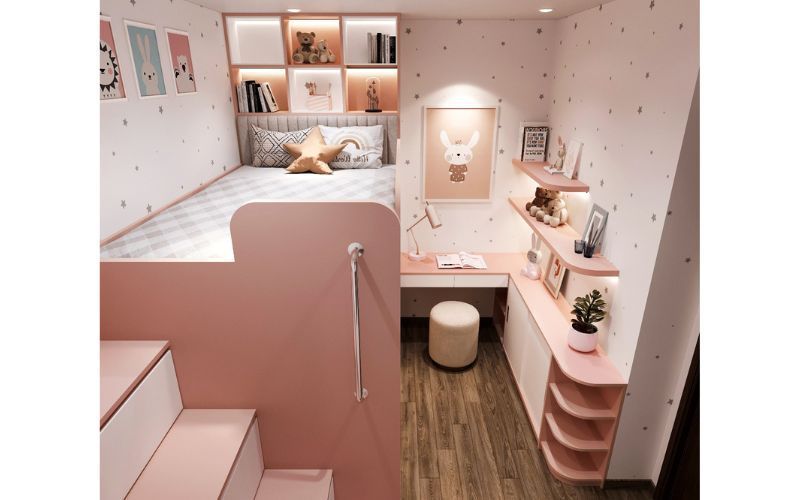 - Sàn gỗ công nghiệp ở các phòng ngủ.