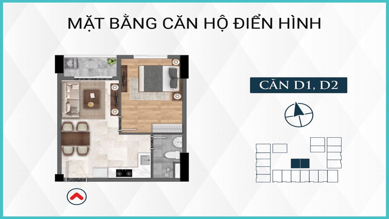 Thiết Kê Căn Hộ Bcons Polaris 1 Phòng Ngủ 1 WC : 41m2 - 43m2